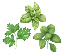 Basil, Cilantro & Mint:Different growing requirements, and might compete for the same nutrients in the soil