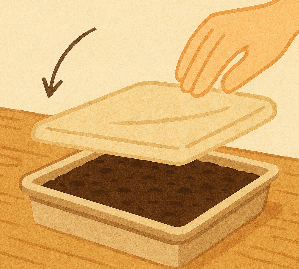 Cover your tray with a lid, damp paper towel, or plastic wrap to trap humidity. Place it somewhere warm and dim for 2–3 days.