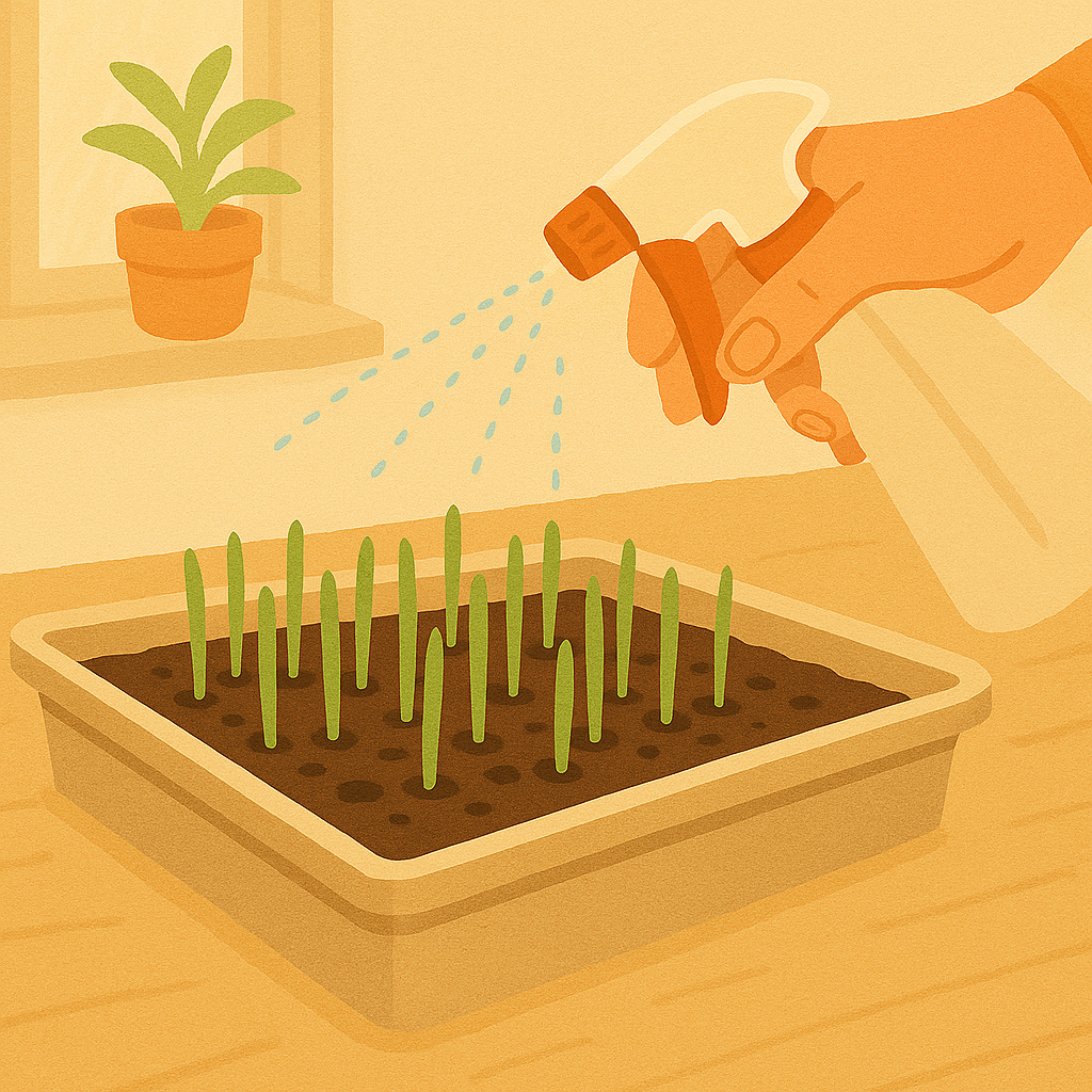 When the first green shoots appear (about an inch tall), remove the cover and move the tray to bright, indirect light.