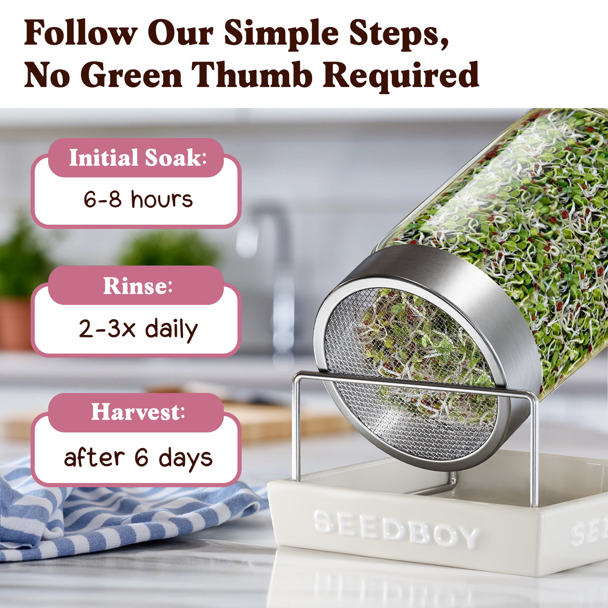 - One Bag = 8 Quarts of Fresh Sprouts (24 Large Servings)